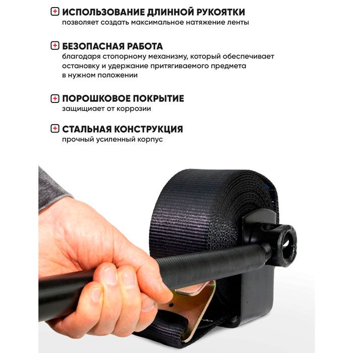 Лебёдка для стяжки груза 7,5 т. для ленты 100 мм. 8 м.